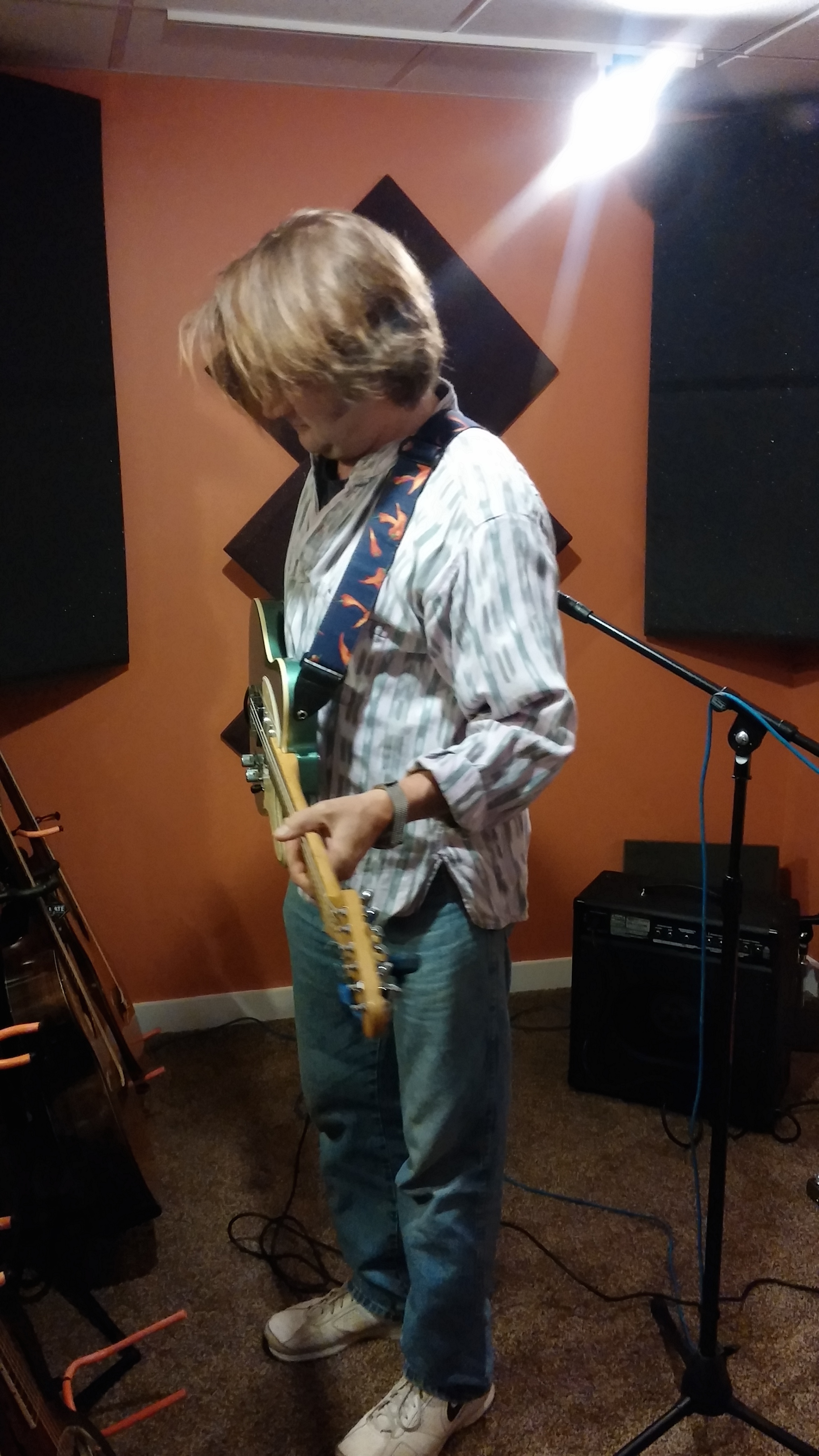 Friday we were all back in the studio at National Media Services in Front Royal hoping to get the last five songs from Again into the can. Three out of five is not bad. We recorded Pick One, Scarlet at Midnight, and Worry Me No More. Six hours later, we were toast.