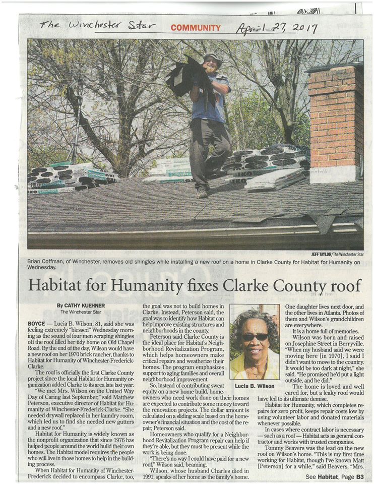 Habitat for Humanity WFC only recently began its good work in Clarke County. Read all about it here in two articles from the Winchester Star. Where’s Aubrey, which has raised $14,481 playing benefit shows to date, is proud to support Habitat, and doubly proud that Habitat has moved into Clarke County.